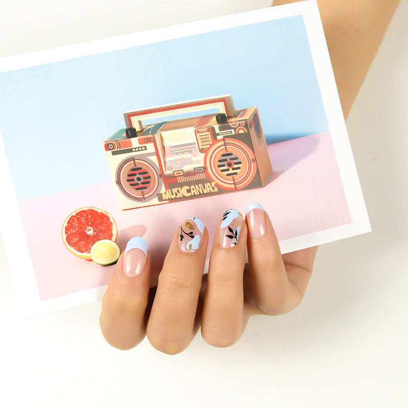 Cada Set incluye 20 Stickers de gel Semicurado , busca la lámina que sea del tamaño de tu uña, pégala y presiona con el repujador de madera que incluye el set. Corta el Sticker para que quede del tamaño de tu uña y aplica luz de la lámpara UV. Para finalizar lima para que el acabado sea profesional.