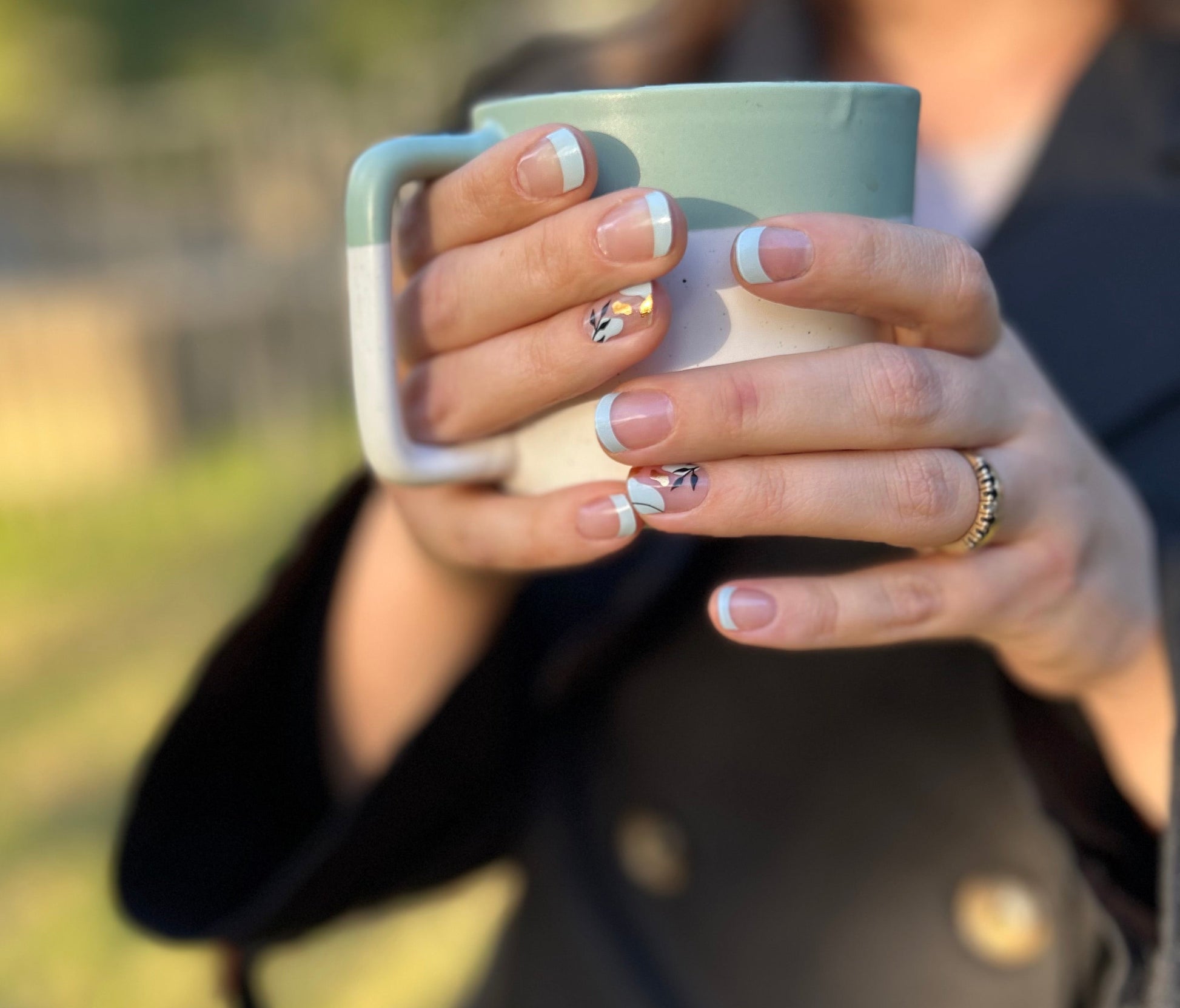 Floral Blue, una combinación de manicure francesa y flores. Ideal para complementar tu look💅🏻
