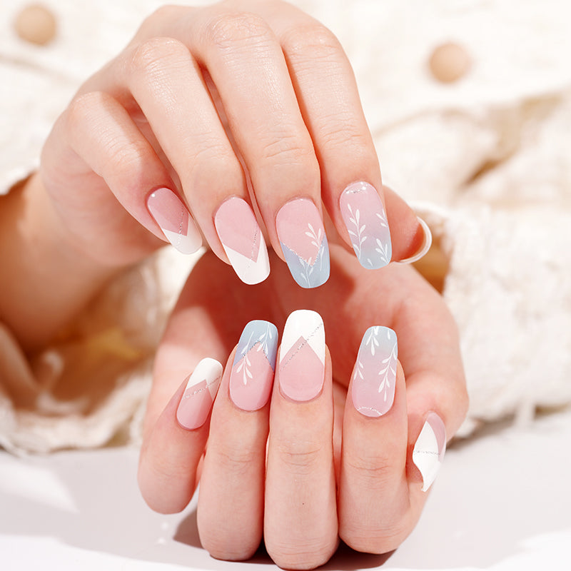 Cada Set incluye 20 Stickers de gel Semicurado , busca la lámina que sea del tamaño de tu uña, pégala y presiona con el repujador de madera que incluye el set. Corta el Sticker para que quede del tamaño de tu uña y aplica luz de la lámpara UV. Para finalizar lima para que el acabado sea profesional.