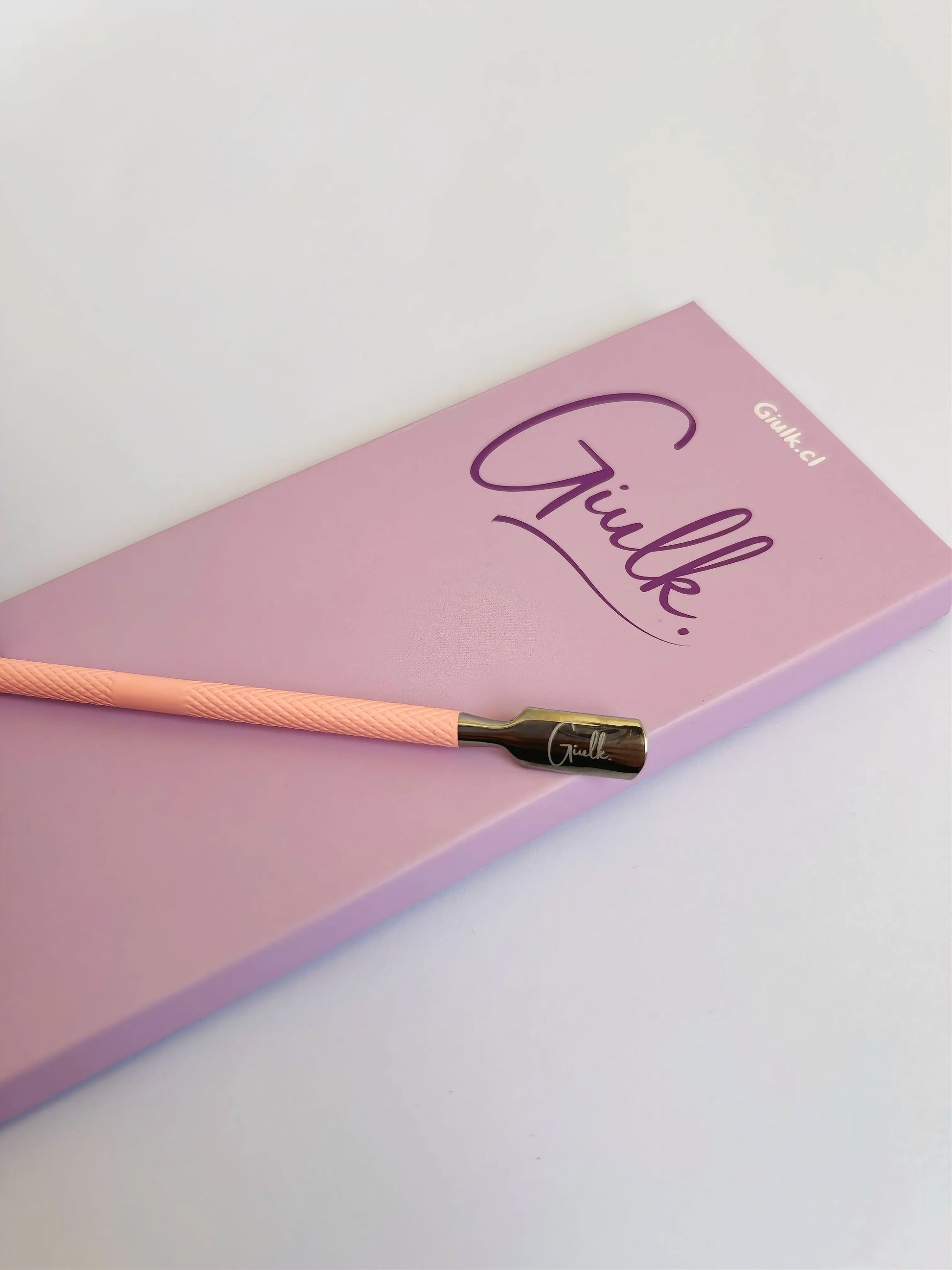 Nuestro repujador de cutículas te ayuda a limpiar y definir el contorno de tus uñas fácilmente, dejando una superficie lista para aplicar tus Giulk. Su diseño ergonómico permite un manejo suave y seguro, ideal para preparar tus uñas.